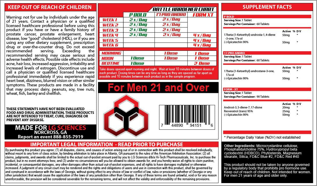 We recommend a 6 Week Cycle for LG Sciences Battle Hardener Kit. 17 Pro Andro and pBOLD are prohormones and FORM XT is used as Post Cycle Therapy.