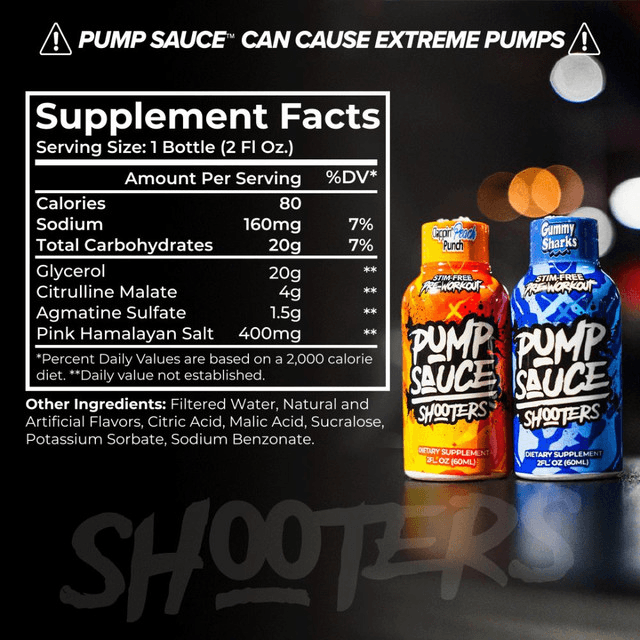 It is recommended to shoot one full bottle 15-30 minutes before your workouts. Make sure to increase your water intake before and during your workouts when taking Pump Sauce.