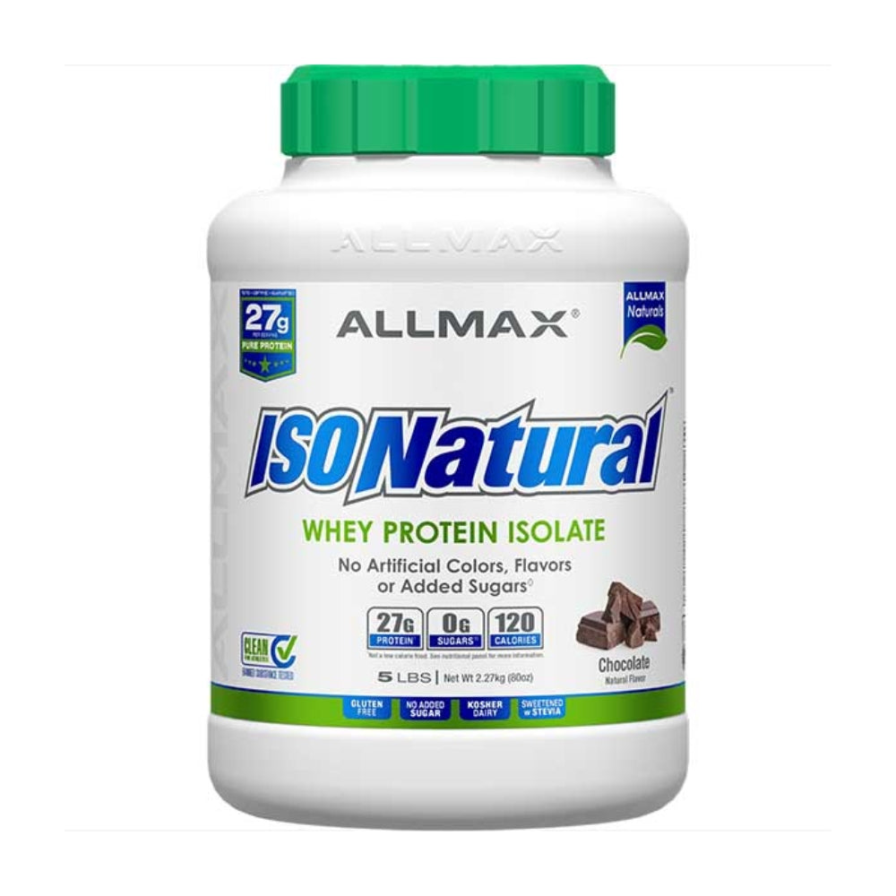 Protein is an essential component of every successful athlete’s diet. Unfortunately, despite so many protein options available, the majority of protein powders are loaded with fillers, artificial ingredients, and synthetic sweetners. With Allmax Nutrition’s IsoNatural, you can be confident that you are getting a protein powder that is 100% naturally flavored and free of any hard-to-pronounce mystery ingredients. IsoNatural contains no added sugar and is naturally sweetened with Monk Fruit extract and Stevia Root, so you can enjoy a decadently delicious protein drink without any of the guilt. Featuring 27g of protein per scoop, IsoNatural uses 100% Whey Protein Isolate derived from U.S. Dairy Farmed whole milk. What’s more, IsoNatural is gluten-free, soy-free, and 99% lactose-free, making it an ideal choice for those who are sensitive to lactose. Each tub of IsoNatural comes equipped with Allmax’s unique SCOOP-LOCK™ Technology that keeps your scoop locked in the lid, right on top and ready to use every time! Plus, like all other products from Allmax Nutrition, IsoNatural is produced in a cGMP facility and undergoes a rigorous 5-stage quality control process to ensure that you are getting only the finest and best ingredients at their most effective doses. No matter what your fitness goals are, IsoNatural will help you get there quicker by stimulating protein synthesis and increasing your lean muscle mass. Plus, you can feel good knowing that you are fueling your body with all-natural ingredients and nothing artificial. Order your tub of IsoNatural by Allmax Nutrition today and feed your muscles, the natural way!