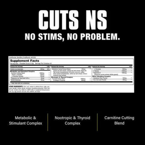 Animal Cuts powder is now available in a non stim version! This formula is perfect for the active gym goer, as well as competitor level athletes who prefer the non stim option. This caffeine free fat burner is designed to boost your metabolism and expel excess water as the formula is based around the Carnitine butting blend which includes Acetyl L-Carnitine and L-Carnitine Tartrate. These are two forms of carnitine that  have a proven track record in shrinking fat cells. Animal cuts non stim can be used by both men and women as their go to weight management supplement. Other important ingredients include green tea leaf extract to give your metabolism a kick in the butt! The water shedding complex, to expel excess water weight, is also included to give you that "shrink wrapped" look. Animal cuts non stim couldn't be more perfect for someone who wants to start a cutting regimen without having to deal with the jitters!