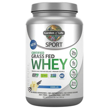 Garden of Life Sport Grass Fed Whey is different from the average whey protein on the supplement market. This whey protein is a certified grass fed, clean, premium-quality protein that you will wish you had known about sooner! GOL Sport's Grass-Fed Whey helps you refuel after a workout with a hearty 24 grams of protein in its formula, along with 6 grams of BCAAs for further increased recovery. This is already more than other whey proteins can say about their formulas', but it doesn't even stop there for Garden of Life Sport Grass Fed Whey Protein! Garden of Life Sport Grass Fed Whey Protein is truly grass-fed whey protein, and it is certified so. It has no added hormones, antibiotics, or sugar, and uses the cleanest ingredients, as is a staple of Garden of Life and Garden of Life Sport products! So if you're looking for a grass-fed whey protein that is the best of the best, look no further than Garden of Life Sport Grass Fed Whey Protein!