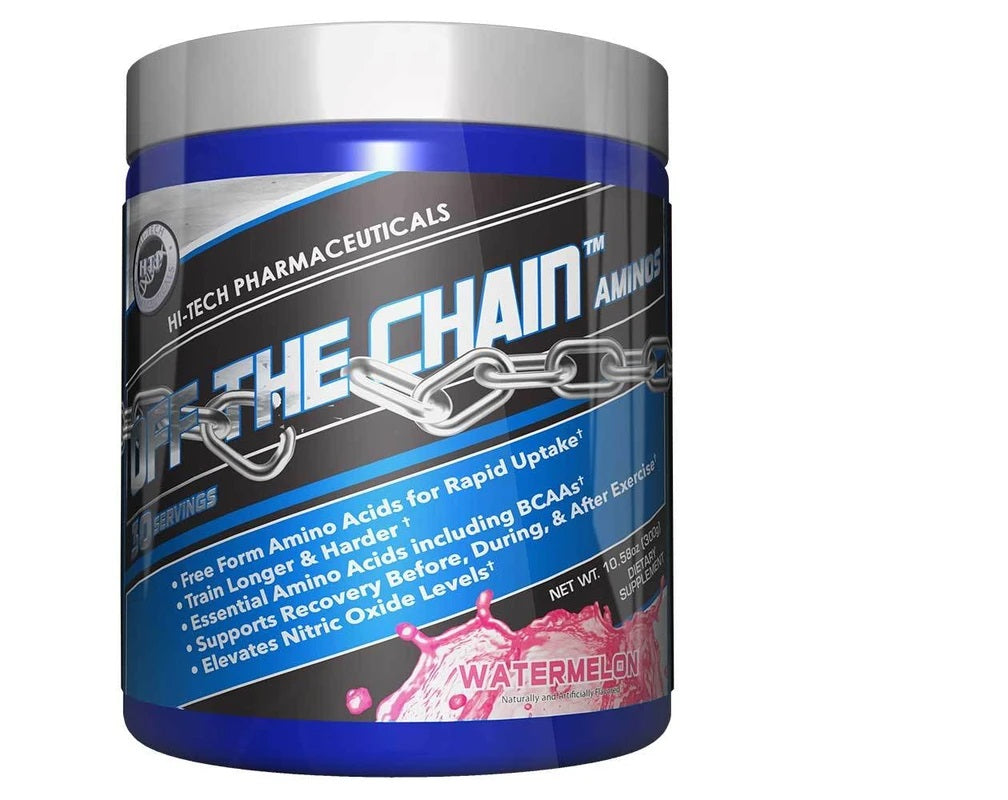 Are you aware of the benefits an Amino Acid supplement can add to your life? Amino Acids are essential for the synthesis of Proteins, Enzymes, Hormones, Neurotransmitters, Metabolic pathways, Mental stabilization, and more. If you are looking for a great supplement, Hi-Tech Pharmaceuticals has got you covered with Off The Chain.
