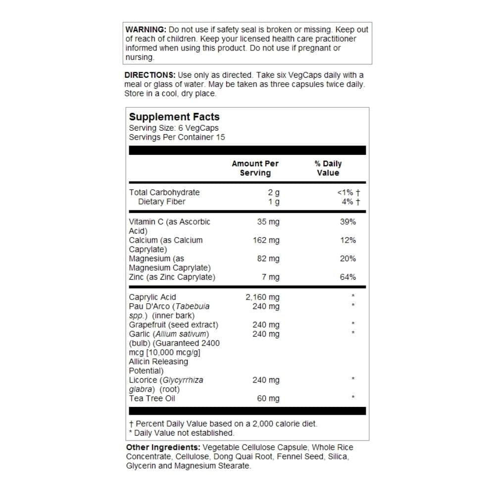 Solaray Yeast-Cleanse Ingredients