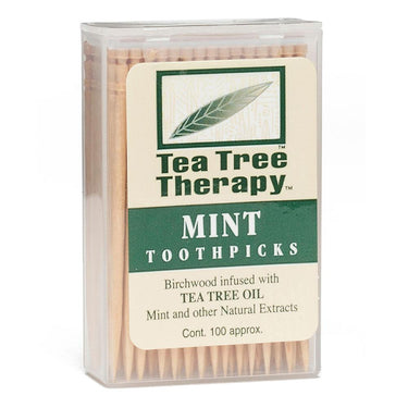 Tea Tree Therapy Toothpicks are birth wood toothpicks with Tea Tree Oil and other natural extracts to support optimal oral hygiene.
