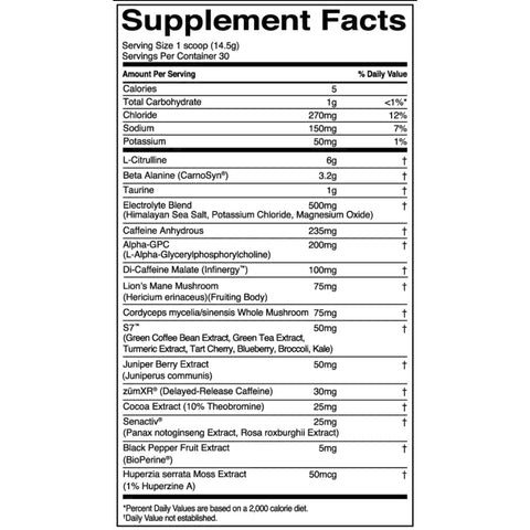 Take one scoop with 8-12oz of cold water. Consume 20-30 minutes before working out. First time use, start with 1/2 serving to assess tolerance!