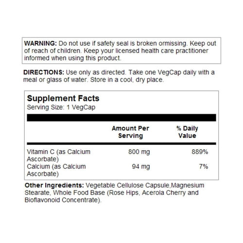 Solaray Vitamin C Non-Acidic 800mg Buffered 90 Capsules Ingredients